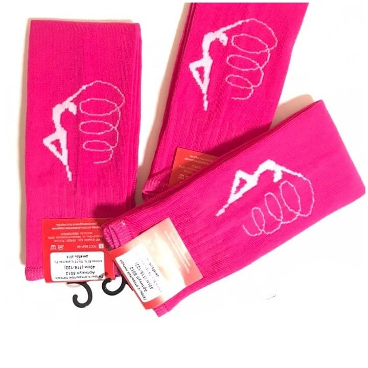 Stay warm and impress others with these very comfortable leg warmers with open heel and a gymnast print.